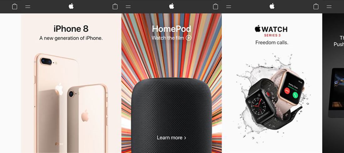 Above, you can see how Apple does this very well. No matter which colours it brings into play, it gives everything space and uses shadows and sensible shot composition to keep things distinct.