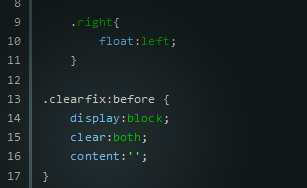 Simply have a class with display:block; and clear:both;, (we set it to :before so it acts as its own element in the style, otherwise the .clearfix values would overwrite the .content values).